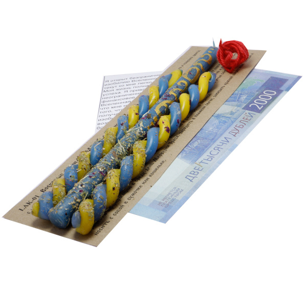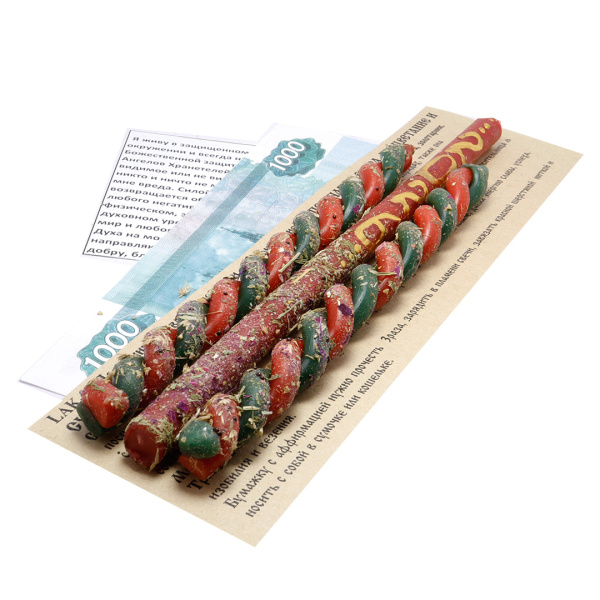 Спец. цена 112 ₽/упак Праздничные свечи ДЕНЕЖНЫЙ МАГНИТ воск с травами и аффирмацией клевер брусника цикорий 16см Артикул— LAK-01 нет в наличии