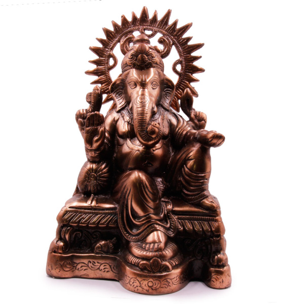 Спец. цена Распродажа 1 999 ₽/шт Ганеш с нимбом на троне - символ процветания, мудрости и успеха силумин 33см-22см 1,9кг Артикул— SIL4372 нет в наличии