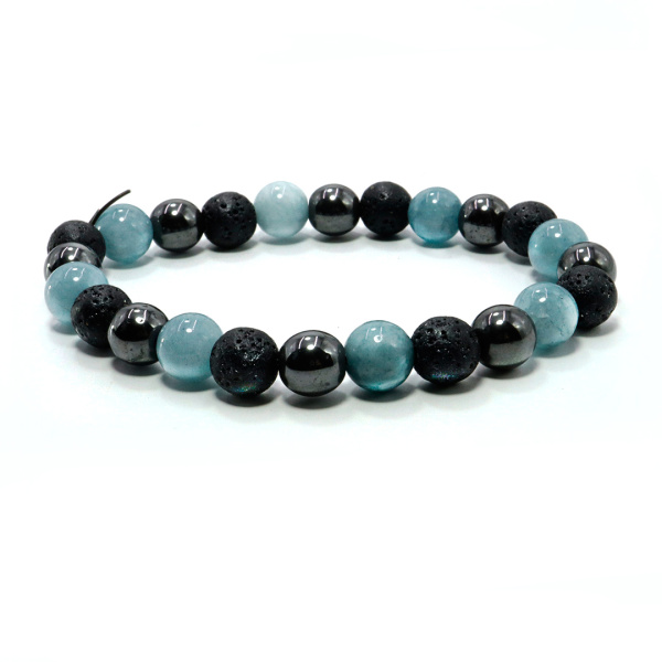 Акция фикс 180 ₽/шт Браслет Планетарный ЛУНА Каменный лава Гематит Аквамарин осимвол дружбы, любви и долголетия Артикул— SEW108-21AV нет в наличии
