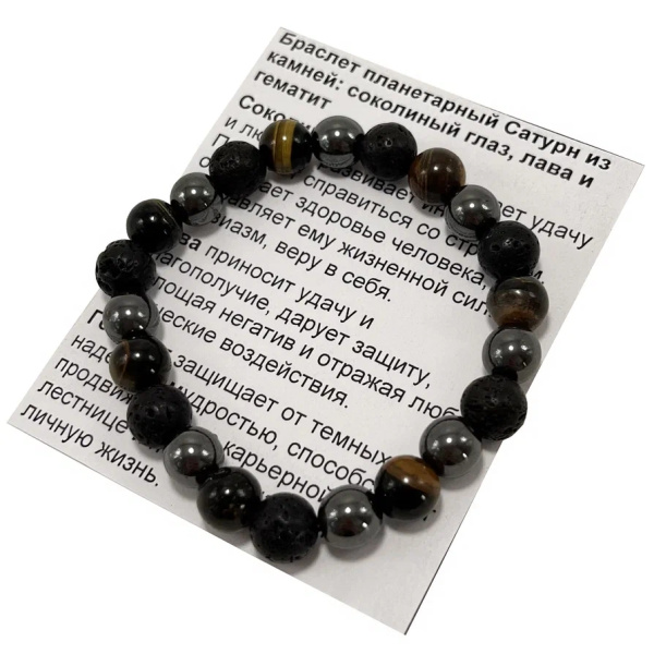 Акция фикс 180 ₽/шт Браслет Планетарный САТУРН Каменный лава Гематит Соколиный глаз притягивает любовь и удачу 8мм Артикул— SEW108-21SG нет в наличии