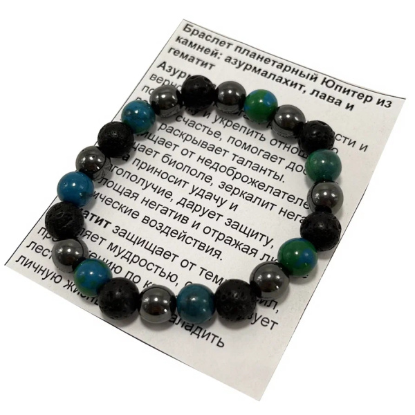 Акция фикс 185 ₽/шт Браслет Планетарный Юпитер каменный лава Гематит Азур Малахит магнит для любви, счастья и денег 8мм Артикул— SEW108-21AZ нет в наличии