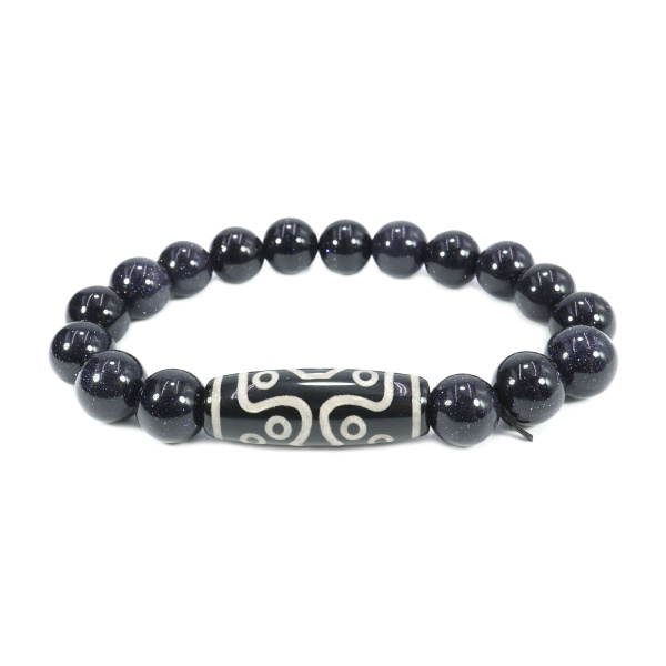 Акция фикс 250 ₽/шт Браслет из камня Синий авантюрин и бусина Дзи оберег на процветания и счастья 8мм Артикул— DCH-B8 нет в наличии