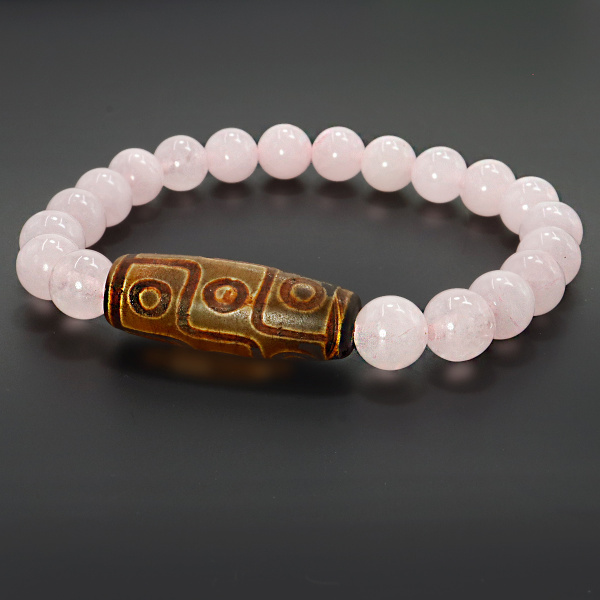 Акция фикс 220 ₽/шт Браслет из камня Розовый кварц и бусина Дзи оберег притягивает энергии счастья и любви 8мм Артикул— DCH-B11 нет в наличии