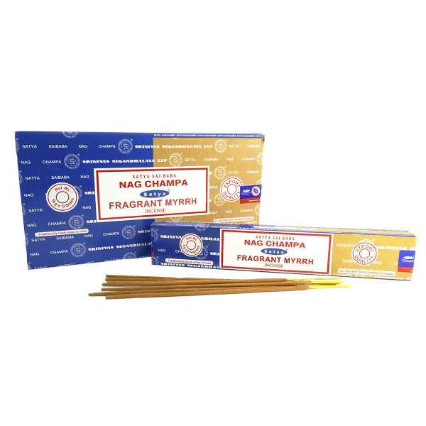 Спец. цена 730 ₽/упак Благовония Satya Combo Nag Champa-Fragrant Myrrh Комбо Нагчампа-Мирра 16gm уп-12шт Артикул— 450COM-NC-FM нет в наличии