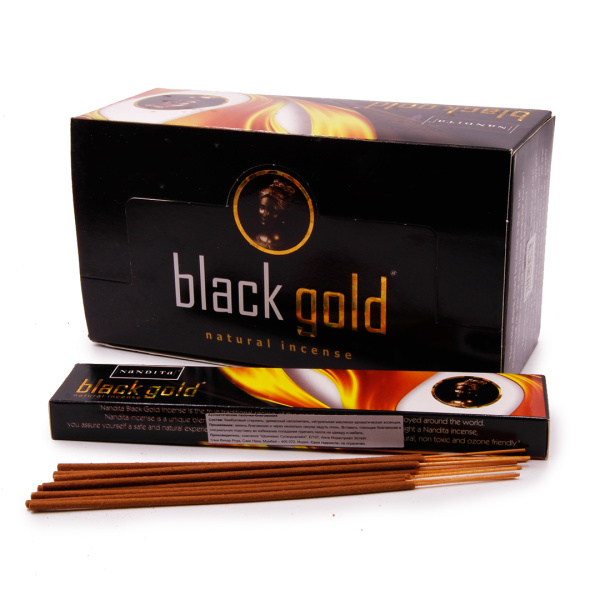 1 085 ₽/упак Благовония Nandita Black Gold 15gm уп-12шт Масала Денежные Сандал Лотос Артикул— NF037 нет в наличии