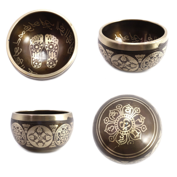 Акция фикс 1 842 ₽/шт Чаша поющая с золотыми символами Стопы 5 металлов от 420гр до 600гр 6,5см-11,5см Артикул— SNO-G1-500 нет в наличии
