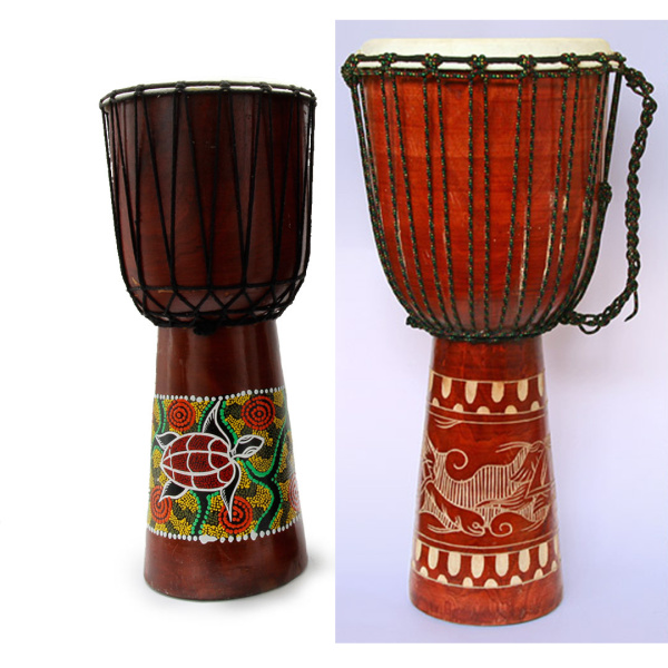 Распродажа 500 ₽/шт Баpабан НЕКОНДИЦИЯ Джембе Дерево роспись в точку Кожа h-50см d-20см Артикул— KELV01-50-U нет в наличии