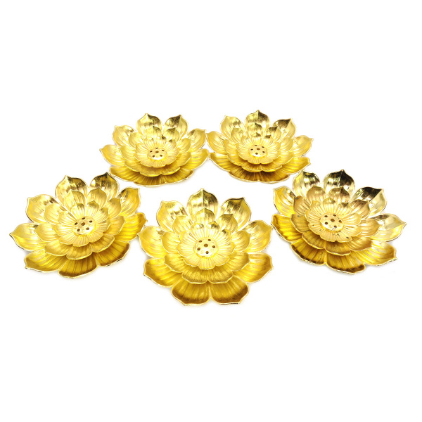 Спец. цена Распродажа 215 ₽/упак Подставка под благовония малый цветущий Лотос силумин УП-5ШТ цвет - золото Артикул— STC116-5 нет в наличии